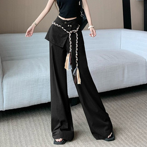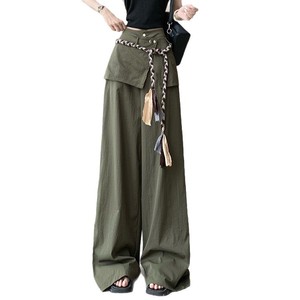 アメリカンスタイルのウエストロープバットカーテン作業服ワイドレッグパンツ女性の夏の新しいホットガールハイウエストルーズスリミングフロアレングスパンツ