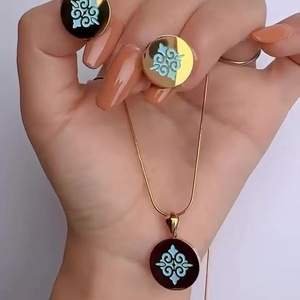 哈萨克民族风游牧清简项链耳钉两件套经典设计优雅显气质时尚首饰