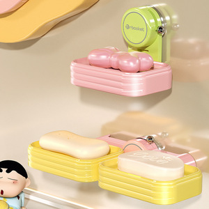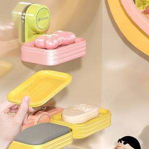 ドーパミン吸盤石鹸箱壁掛けパンチフリーホームフリップドレン石鹸箱収納ラック 2025 新しいスタイル