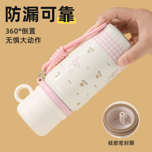 vriuknt 水玉模様の子犬魔法瓶カップ女の子のための見栄えが良いかわいい学生ストローカップ子供用ダブルドリンクカップ