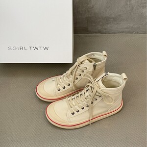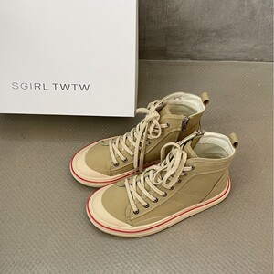 SGIRL TWTW ファッションハイトップキャンバスシューズ女性のための 2025 新しいサイドジッパーシンプルで多用途通気性カジュアルシューズトレンディ