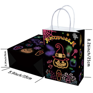 在庫ありハロウィンコウモリカボチャパーティーギフト包装袋カラープリント黒と白の牛革ポータブル紙袋