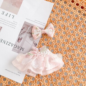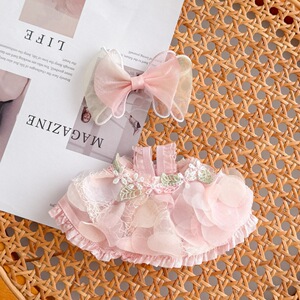 ベビー服、ピンクのメッシュ花びら、レース刺繍、妖精スカート、リボン人形、衣類アクセサリーのみ