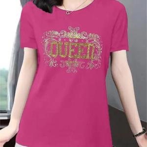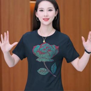 2025 マザーズスタイルヘビーウェイトスリーブプリントスリムファッションカジュアルレターシャツブルーローズその他レギュラーパンツ