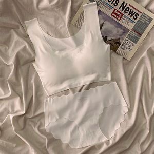シームレスアイスシルク下着女の子安全世代ノンワイヤーブラジャープッシュアップ学生胸露出ベストチューブトップセット