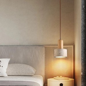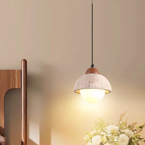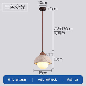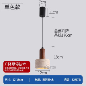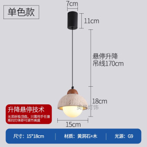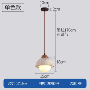 黄洞石日式侘寂风卧室床头吊灯中古奶油民宿复古餐厅可升降小吊灯