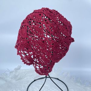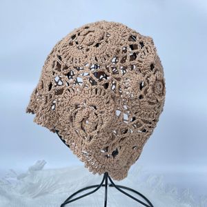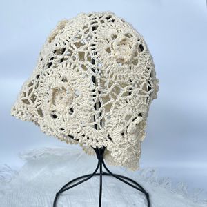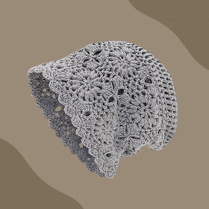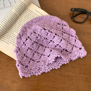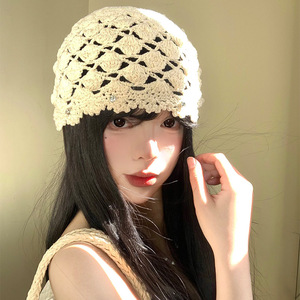 日系手工编织包头帽女春秋薄款镂空毛线帽复古文艺针织帽堆堆帽