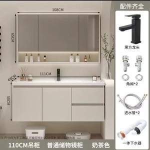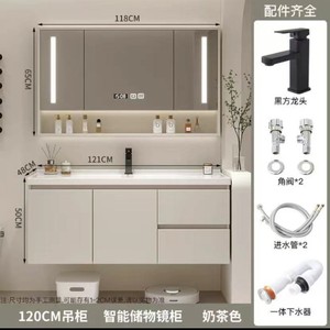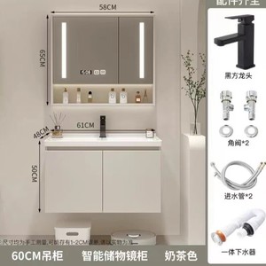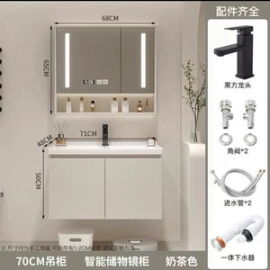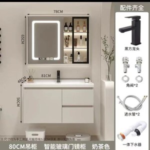 シンプルな無垢材と陶器一体型洗面台と浴室キャビネットの組み合わせ、洗面台、洗面ボウル、洗面台、スマートミラーキャビネット