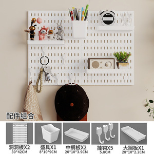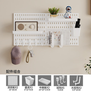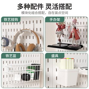 プラスチック製の穴あきボード、INS風の白い壁掛け収納バスケット、DIY用の大量のアクセサリー収納フック、クイックインストール穴あきボード