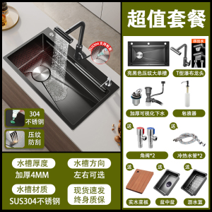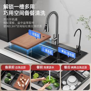 ブライトブラック—[75*45—C売れ筋モデル]—極太4.0ハニカム左側—3速引き出し式蛇口+カップウォッシャー+浄水器+水切りバスケット