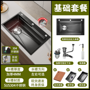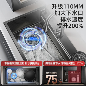 ブライトブラック—[80*45—C売れ筋モデル]—極太4.0ハニカム左側—3速引き出し式蛇口+カップウォッシャー+浄水器+水切りカゴ