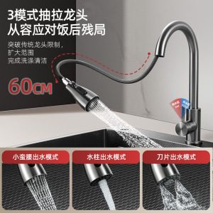 ガングレー—[60*45—C 売れ筋モデル]—極太 4.0 ハニカム左側—3 速引き出し式蛇口 + カップウォッシャー + 浄水器蛇口 + 水切りバスケット