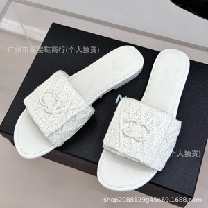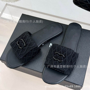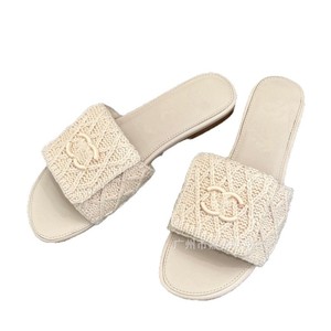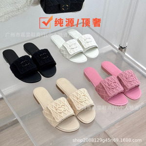 25 夏の新スタイル本革織りフラットスリッパ、小さな香り、ファッショナブルで多用途なインターネットセレブの女性用シンプルサンダル
