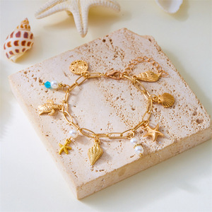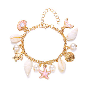 海の星卸売新作ブレスレット、ヨーロッパとアメリカの真珠、ビーチペンダント、クロスボーダーシェル、ファッショナブルなビーチチェーン、多用途チェーン