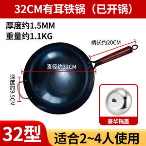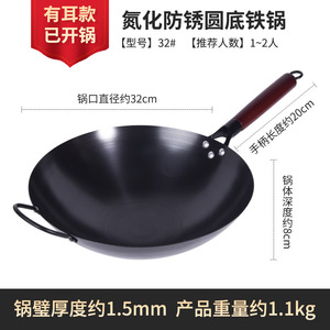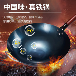 老式铁锅圆底炒锅不粘锅家用炒菜锅无涂层已开锅炒鍋电磁炉炒菜锅