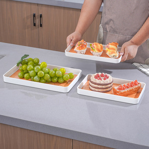 新しい木目調プラスチックトレイ商業多機能ホテル落下防止トレイレストランマルチカラーオプションフルーツトレイ卸売