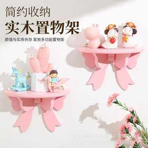 木製リボン収納ラック家庭用壁掛け木製収納ラックピンクのリボン壁収納ラック