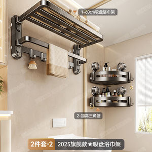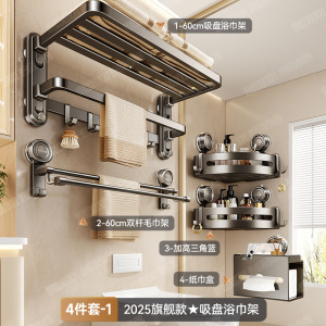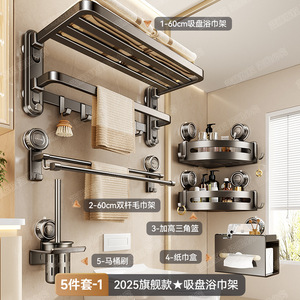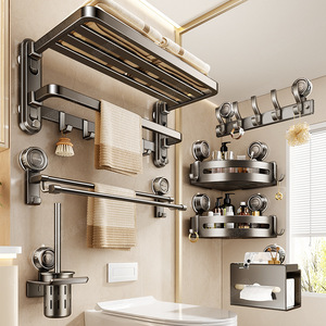 ガンアッシュ吸盤タオルラックバスルームパンチフリーバスタオルラックトイレバスルームバスルーム収納アクセサリーセット