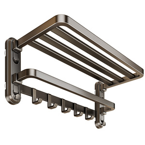 ガングレー吸盤 フック付き ダブル折りたたみバスタオルラック 50cm