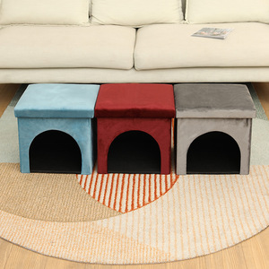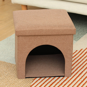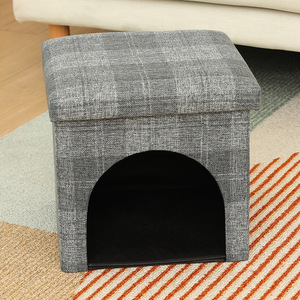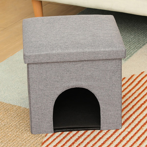 多機能コットンとリネンの猫ハウス収納スツール、座ることができるペットの猫と犬用の収納スツール、カスタマイズされた折りたたみスツール