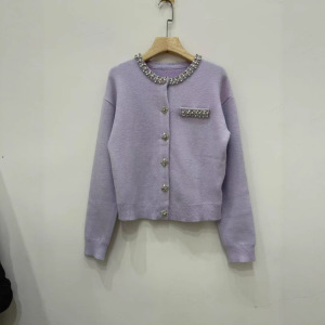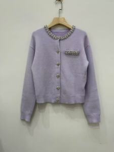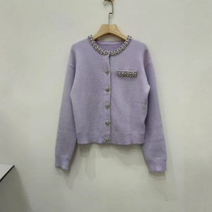 フレンチエレガント2025初秋の新しい気質スモールフレグランスラウンドネックダイヤモンド付きシングルブレスト長袖ニットカーディガン