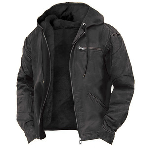 跨境专供新款外贸男装爆款夹克外套连帽加绒加厚工装夹克拉链外套