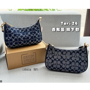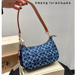 25 テリーアンダーアームバッグ麻雀バッグフレグランスデニムブルー三日月バッグシングルショルダークロスボディチェーンホーボーバッグ