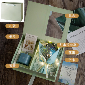 香薰礼盒+栀子花+灯串拉菲草+贺卡