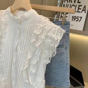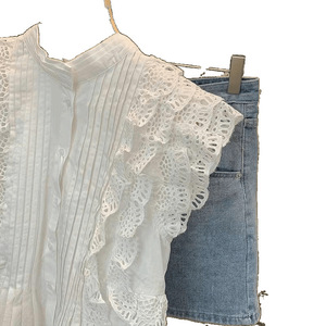 シャツレディースノースリーブレース中空フリル2025春夏新デザインニッチフレンチベストトップ