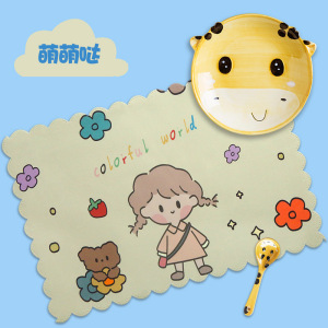 子供用シンプルな洗えるテーブルマットランチテーブルクロス小学生かわいい漫画パターン断熱ランチテーブルマット
