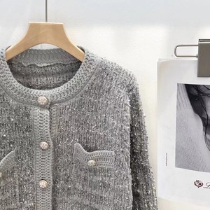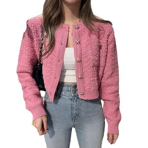 韓国シックな秋の気質小さな香りラウンドネックシックなボタンルーズカジュアル多用途ショートニットジャケット女性用