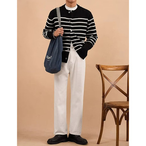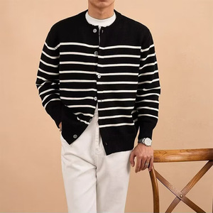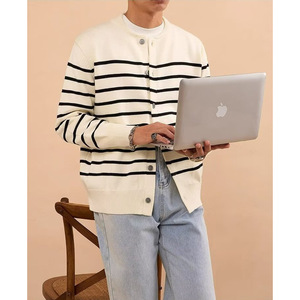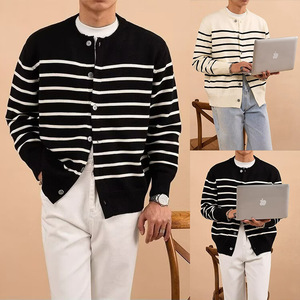 春秋新款条纹开衫外套针织衫毛衣男女圆领轻奢慵懒风外贸跨境批发