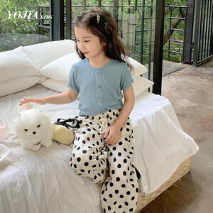 中・大女子夏水玉9点パンツ海辺リゾート風水玉パンツ女子中学生ハーレムパンツ