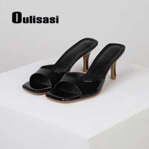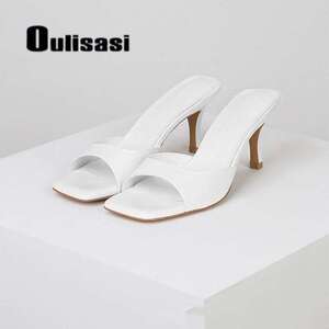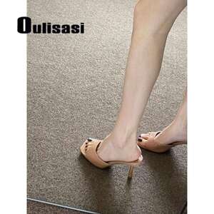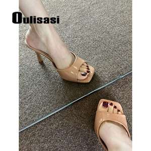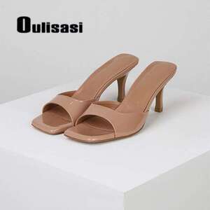 Oulisasi ヌードハイヒールサンダル女性の夏の気質スティレットヒールスクエアトゥオープントゥセクシーなアウターワンストラップサンダル