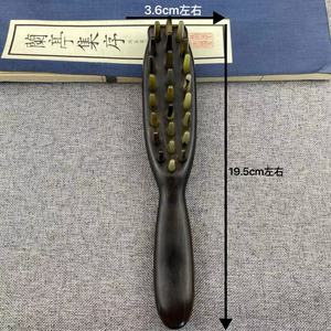 紫光檀猫头鹰带柄羊角25尖齿按摩梳