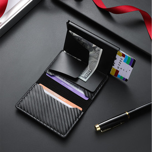 男性用クロスボーダー盗難防止カード超薄型カーボンファイバーRFID自動カードリリースアルミニウム合金カードホルダー銀行カード財布