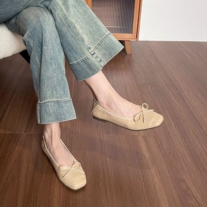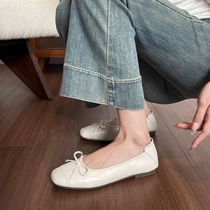 本革の気質、オフィスワーカー向けの小さな香りのフラットシューズ、優しいリボン、柔らかく快適で疲れにくい通勤靴