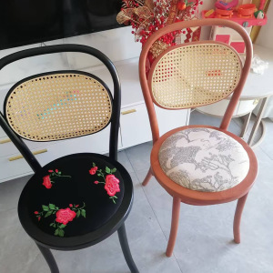 北欧フレンチ無垢材籐わびさびスタイルレストランカフェレトロチェアシンプルな背もたれホームデザイナーダイニングチェア
