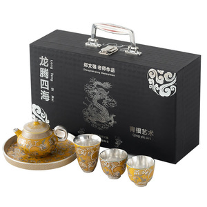 紫禁城敦煌文化創造銀メッキカンフーティーセット新築祝いギフト教師、リーダー、長老へのお土産