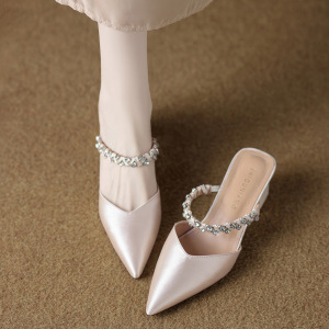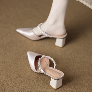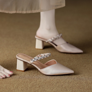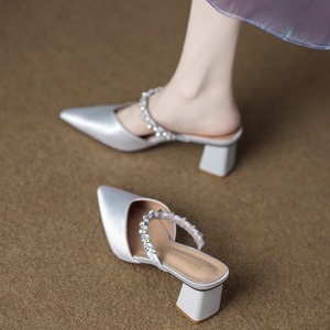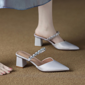6009-6 宴会ハイヒール包頭ハーフスリッパ女性のラインストーン優しい夏のアウターウェアスカートサンダル