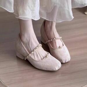 羊皮版~内增高7CM复古粗跟玛丽珍鞋女2025新款温柔芭蕾鞋高跟单鞋