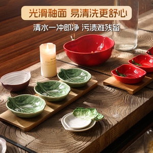 工場直送の色釉セラミック工芸品、牧歌的なスタイル、新鮮でキュートな子供用ボウル、皿、カップ、野菜セラミック食器セット