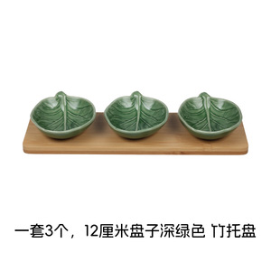 3個セット、プレートグリーン竹トレイ 12cm 枚