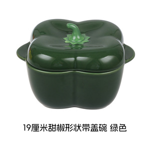 ピーマン型ボウル 19cm 個 蓋付き - グリーン