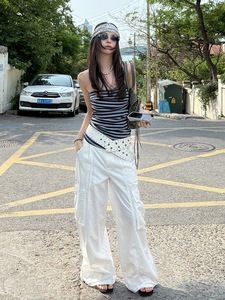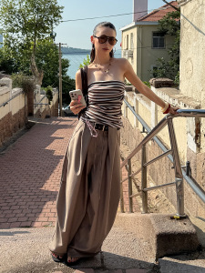 MMFISH ファッショナブルなカジュアルストリートコントラストストライプオフショルダーホットガールスリムプリーツノースリーブチューブトップ t25T351