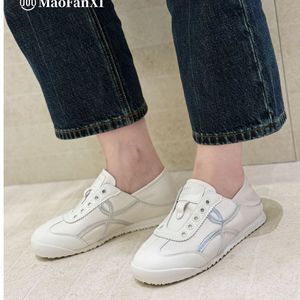 Mao Fansi 9927 新しい本革牛革ラウンドトゥフラットソール道徳訓練靴、紐なし、ヒール付き、ツーウェアスポーツカジュアルシューズ