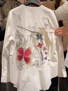 ソリッドカラーのヘビービーズシャツ女性のための 2025 春韓国スタイルの新しいラウンドネック長袖トップルーズショルダーシャツトレンディ