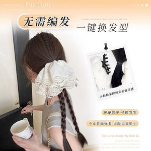ウィッグ三つ編み女性のハイポニーテールレースヘアバンドスタイルインセンスダブル三つ編み人工毛ウィッグポニーテール