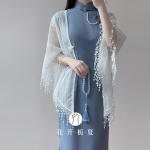 チャイナドレスと2025年夏の新しい中国風カーディガン日焼け止めバックルタッセル付きのスーパーフェアリーホワイトレースショール