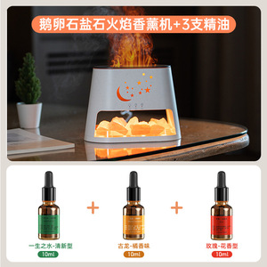 2025 新しい塩石ランプ炎アロマセラピーマシンデスクトップ usb 大霧量カラフルな炎加湿器エッセンシャルオイルディフューザー